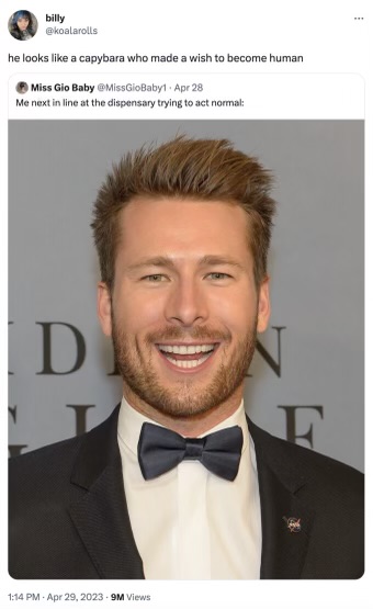 Something else I’m surprised about? That I went on for this long. We did it, friends. Deep breaths. For a palate cleanser, here’s a tweet about actor Glen Powell that makes me chuckle every now and then: